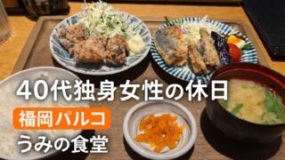 40代独身働く女性の3連休1日目の過ごし方。家でゆっくり過ごし、夕食は福岡天神・パルコ地下の「うみの食堂」へ。新鮮な海鮮と選べる定食で心もお腹も満たされました。