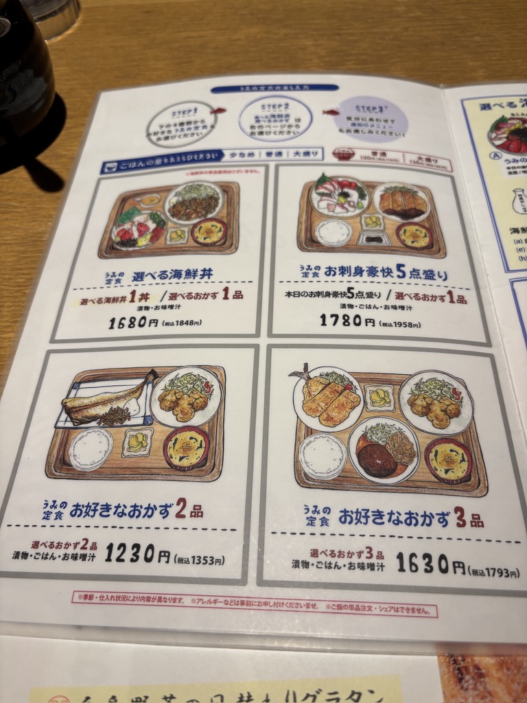 新鮮な海鮮や好きなおかずを選べる「うみの食堂」は本当におすすめです。